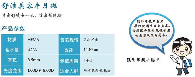 ★模壓和車削結(jié)合的生產(chǎn)技術(shù),鏡片中心定位佳。★三明治式制造工藝,色彩不接觸眼球,安心舒適:添加鎖色因子,使顏色外圍形成一道透氧保護層,鎖色但不鎖氧。★多種個性化色彩,潮流時尚必備單品。★定期更換鏡片,避免蛋白質(zhì)的沉淀產(chǎn)生,減少鏡片護理不當帶來的眼部隱患的幾率,健康安全。