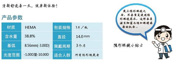 產品說明: ★成熟而穩(wěn)定的離心澆鑄工藝 ★添加保濕因子,有效鎖住水份,配戴清潤、舒適,保濕一整天 ★鏡片成形性良好,配合優(yōu)越光學性能,能矯正低度散光,提供卓越視覺質量